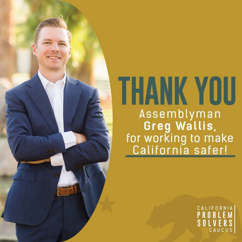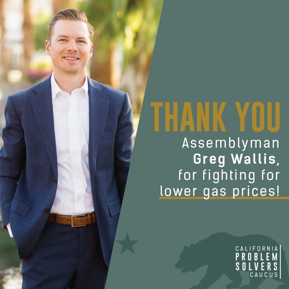 Thank you, Assemblyman Greg Wallis for Fighting to Lower Gas Prices (ABx2 9)and Make Our Communities Safer (SB 268)! Call Assemblyman Greg Wallis and thank him for being a bipartisan problem solver! Call: 916.319.2047